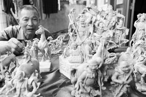 倪水泉的石雕技術,吸收了玉雕中的圓雕、透雕工藝,并得出了“群體綜合性”的新雕法。“群體人物雕是石雕中的空白,其他地方還沒有這種雕法的石雕作品。”倪水泉說,他用自己磨制的特用磨頭和雕刻刀具,發揮他擅長雕群體人物像的特長,雕成了一件件群像石雕作品,人物形態各異,栩栩如生。