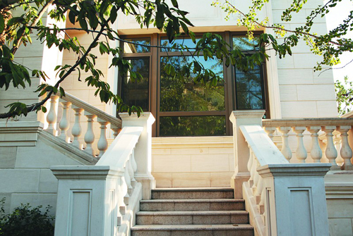 正如陳先生所言,諸多項目打出的全石材干掛,指的是外墻或墻面的,王總說,但是僅這些部位干掛全石材,還不是真正意義上的全石材別墅。之所以有此一說,是因為原河名墅項目,不僅外墻采用法國木紋、德國城堡米黃、西班牙砂巖等幾種名貴材質鋪裝,甚至在立面線條等隱蔽的線腳、檐柱都不例外,檐口,煙囪,花缽,線腳,浮雕,門窗套,寶瓶柱等都大量運用全石材,一刀一鑿手工雕花雕刻,足見誠意。“我們項目全部采用專業石材施工隊伍,聘用技術嫻熟的石匠工人手工打磨,精選原石深度開槽切割、雕刻。弧線浮雕、寶瓶廊柱、層疊檐口等細節經過數道苛刻工藝,付出了很多的心血和成本”,王總說道。