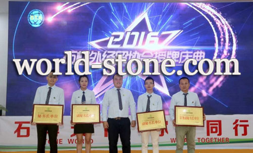 南安市石材外經貿協會于今年4月正式成立,由從事進出口石材貿易的企業及開展相關活動的各類經濟類組織自愿組成,目前有協會會員單位216家,匯聚了中輕石材、福能達人石、康利、華輝、東升、新鵬飛、鵬翔、溪石等知名企業。協會將致力打造stone in china(中國石材)國際新名片。