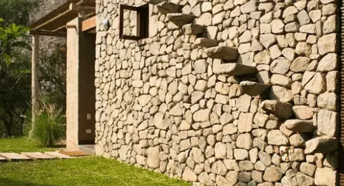 將石材整齊地碼起來,是考驗設計的平衡感來了,用最簡單的石材建起一堵景墻來,樸實又具有創意。