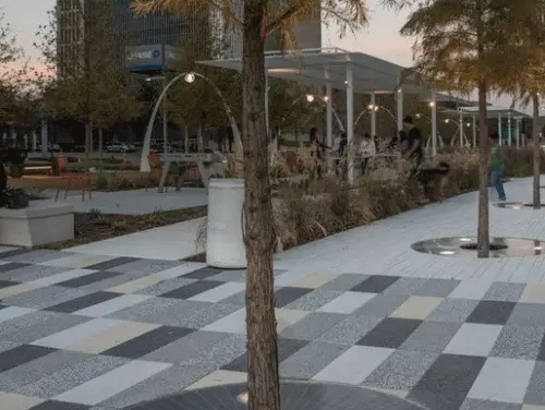 在地面上鑲嵌一些種植槽可以柔化硬質的地面效果。要注意,有種植槽的地方必須沒有水泥灰土等各類基層材料,否則會燒傷植物根系而造成植物死亡。另外,此類種植槽最好在地下鋪設排水系統以利于植物的生長。