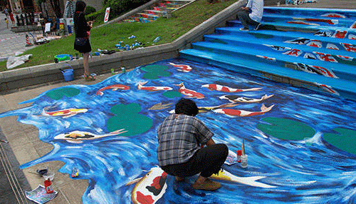 你可以發揮想象,用彩繪的方法給露臺或休憩區畫上圖案,增加個性亮點,也可以直接畫出一塊面積,制造出地毯的效果。彩繪的色彩注意和周圍的環境、戶外家具和諧。顏料在美術用品商店或淘寶網上都能買到。