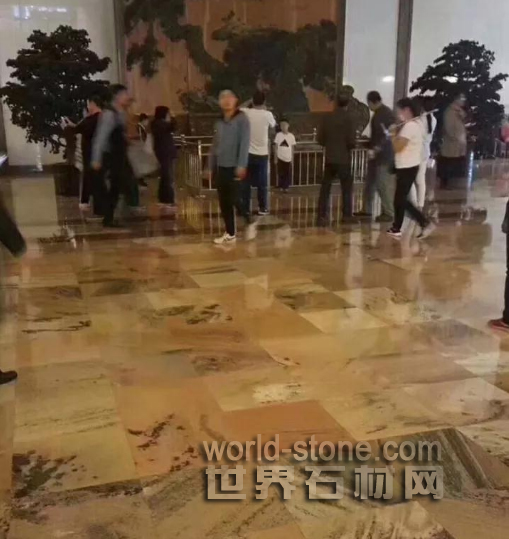 在這么重要的場合,對裝修各方面要求肯定是最高的標準。有人喜歡對石材色差耿耿于懷,常常嘗試各種方法消除色差。其實,大可不必如此,世界上不會有兩塊完全相同的石材,天然的色差恰好是石材的魅力所在。利用好色差,整個空間會綻放出別樣的風采。此時會場的裝修代表的全世界最高的審美標準。地面的石材色差最大限度的展現出石材的最大魅力之處,天然色差’,這是大自然給我們最自然最純正的美。