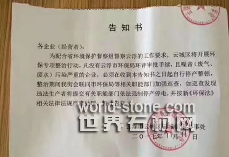 據了解,11月初,云浮河口街成立了石材行業污染綜合整治工作領導小組,研究制定了《河口街石材行業污染綜合整治工作方案》;組成綜合執法組并按照屬地責任在轄區內劃分若干整治網格組,把石材行業污染綜合整治工作任務細分到組、責任到人。一方面,持續開展環境保護、污染防治宣傳,凝聚社會共識,著力營造濃厚的環境污染整治工作氛圍;另一方面,加大日常巡查和監督力度,對沒有按要求配備除塵防護和廢水沉淀處理設施的,經營場所污水橫流、粉塵籠罩、石材廢渣亂堆亂放等企業進行宣傳教育,責令停產整頓,依法予以嚴厲打擊。