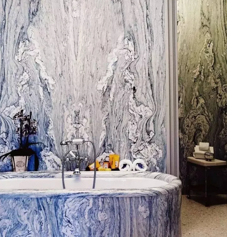花色大理石給人一種個性鮮明且張力十足的視覺刺激。這些彩色大理石紋路的拼接形式與追紋形式,輕松地營造出一種奢華的氛圍,設計的時尚感與奢華感實在是驚艷不已,在這種氛圍下思考人生,別有一番滋味在心頭。
