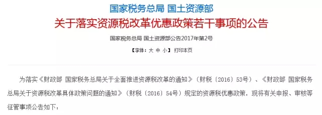 關于《國家稅務總局國土資源部關于落實資源稅改革優惠政策若干事項的公告》的解讀