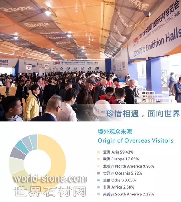 廈門石材展歷經(jīng)17載的沉淀和積累,目前已擁有全球最大的石材采購(gòu)商數(shù)據(jù)庫(kù)。盡管全球經(jīng)濟(jì)發(fā)展放緩,業(yè)內(nèi)人士來廈觀展的熱情卻不減反增,本屆展會(huì)參與人數(shù)再創(chuàng)新高,來自148個(gè)國(guó)家和地區(qū)的150,290位專業(yè)采購(gòu)商(其中境外29,407人)齊聚一堂,共話商機(jī),共謀發(fā)展。