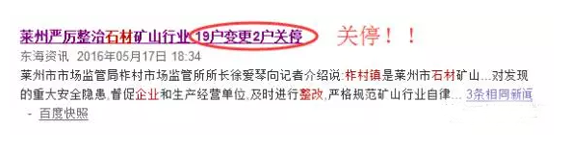 三、5月中旬,山東萊州柞村鎮進行石材行業整改,其結果為:19戶變更,2戶關停。