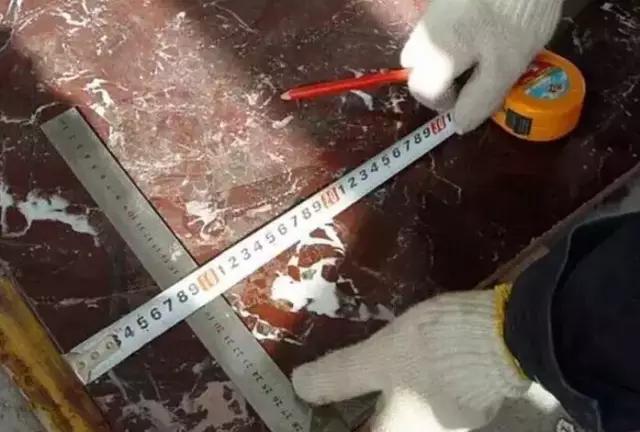 ▲測量大理石準(zhǔn)備將其按照設(shè)計(jì)圖紙切割。