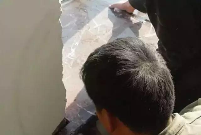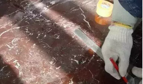 ▲對做好的大理石邊沿縫隙填硅膠并對其表面做保護(hù)。