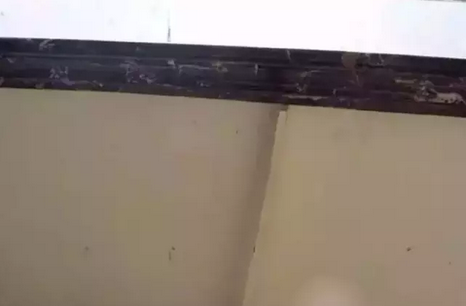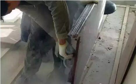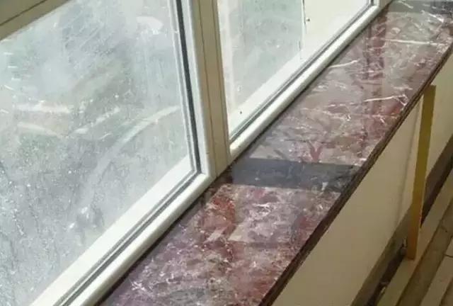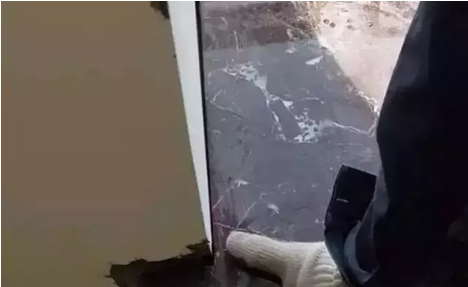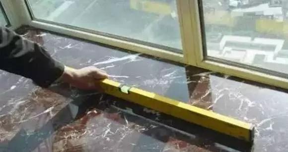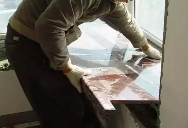 ▲將大理石上窗臺就位,觀察大理石周邊的縫隙。