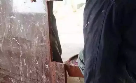 ▲這兩根木頭是用來保護(hù)大理石不受地面沖擊的,放置在大理石下面用做保護(hù)。