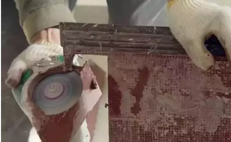 ▲切割大理石背后的鑲嵌保護(hù),將未切除的大理石鑲嵌保護(hù)鑿除。