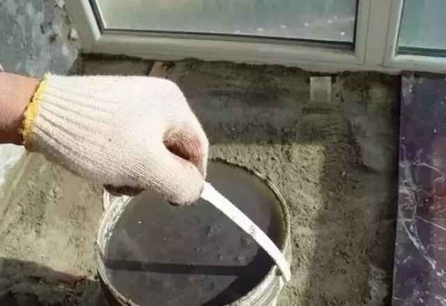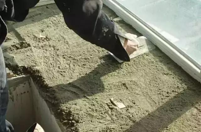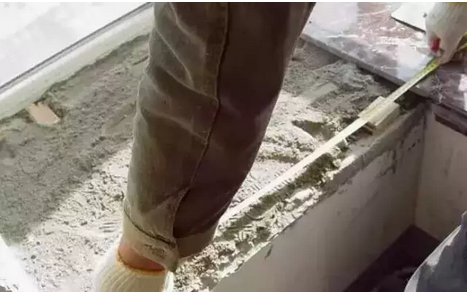 ▲在即將鋪設(shè)的窗臺上用木墊片確定大理石基層的高度。