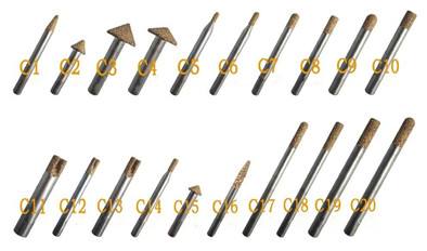 3.冶熔金剛石磨頭刀。它采用軍工高科技“冶熔金剛石技術”制造,具有鋒利度好,雕刻效率高,刀頭不變形,雕刻精度高等特點。因此,對大理石,青石,砂巖等材質進行浮雕雕刻時,常作為首選刀具,同時在刻大字方面也十分出色。