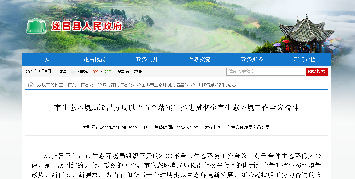 為什么說今年的生態環保工作意義重大呢?主要是因為2020年屬于我國全面建設成小康社會和“十三五”規劃的收官之年,所以更加重視。遂昌分局將切實把握此次會議提出的工作思路、工作重點以及工作要求,始終堅持在發展中保護,在保護中發展,緊緊抓住發展機遇,并且牢牢把握主動權,切實把生態環境保護工作抓出成效,從而為全市綠色發展騰出容量,為更好地滿足人民群眾日益增長的優美生態環境需要奠定堅實基礎。