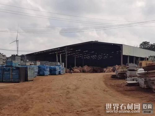 在該企業現場,多部切割機都在高速運轉著切割石料,廠區內及周邊堆放著大量來源不明的石頭、加工好的石材及廢料,尤其石堆場每塊數噸的巨石,著實龐大令人吃驚。