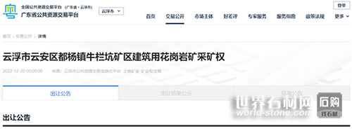 在12月20日0點,廣東云浮又掛牌出讓了一建筑用花崗巖采礦權(quán),