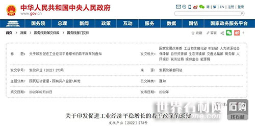 產資源開發利用與國計民生和經濟發展息息相關,礦業政策及發展導向深受石材礦業人的關注。據悉,2022年2月18日,國家發展改革委、工業和信息化部、財政部等國家十二部門聯合發布了《關于印發促進工業經濟平穩增長的若干政策的通知》,