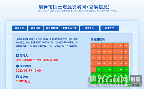 由清遠市德鴻礦產資源開發有限公司以5.68億元的價格成功競得該采礦權。