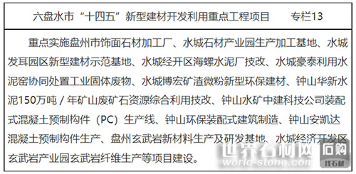 充分發揮六盤水石材資源、交通等優勢,建設綠色建材推廣應用示范工程,促進建材工業和建筑業轉型升級,著力打造六盤水市新的特色優勢支柱產業。