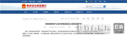 陜西省秦嶺礦山生態(tài)修復(fù)基金前期工作準(zhǔn)備就緒,將進入試運營 ,總投資超3億