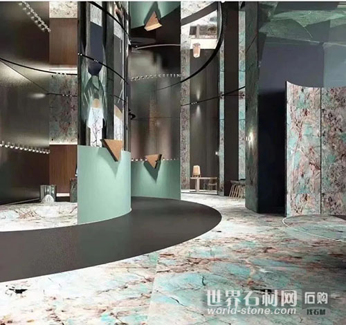 從外觀細細觀賞,亞馬遜綠清透得如陽光下的海面,蔚藍,夾雜著青綠色,裝飾著白色紋理,如海與天的交織畫面,極具藝術(shù)性。許多人認為它是靈性的,可以在平穩(wěn)漸進中改善運氣,于是在裝飾中大范圍運用,如用作背景墻、臺面、桌面、樓梯踏步。