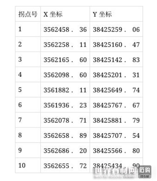 (八)開采范圍:礦區面積0.3909平方公里;開采標高:+584米至+350米。拐點坐標(2000國家大地坐標系)如下: