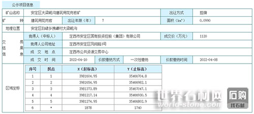 據悉,在4月10日,甘肅省定西市一建筑用花崗巖礦采礦權成功出讓,