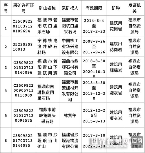 福鼎市這6礦山因礦權過期被關閉,均為建筑用料采石場