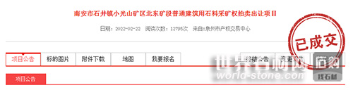 南安石井小光山礦區(qū)建筑用石料采礦權(quán)以4.2億元成功出讓