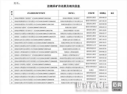 海城市政府關(guān)閉并廢止了域內(nèi)22家建筑用砂石企業(yè)的采礦許可證,依法予以注銷,并發(fā)布公告,具體名單如下: