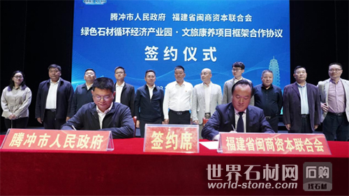 共謀產業發展,共促兩地進步。據悉,在6月29日上午,騰沖市人民政府與福建省閩商資本聯合會共同簽訂騰沖綠色石材循環經濟產業園與文旅康養項目框架合作協議。