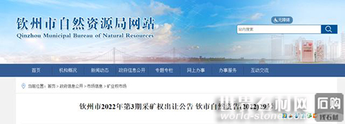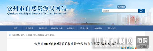 根據《中華人民共和國礦產資源法》、《探礦權采礦權招標拍賣掛牌管理辦法(試行)》等法律、法規規定,經市人民政府批準,欽州市自然資源局以網上掛牌方式出讓以下四宗采礦權。