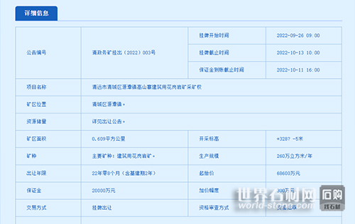 本次采礦權掛牌出讓公告時間:2022年8月26日至9月25日,