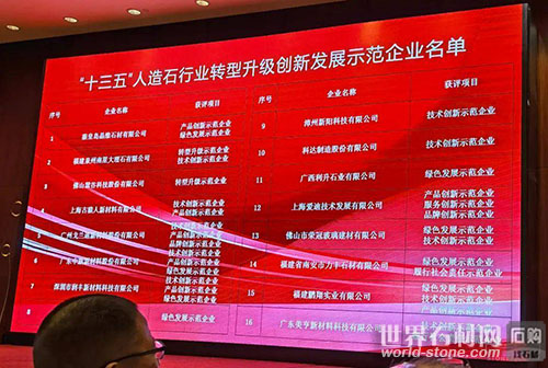 經過幾個月有序申報、嚴格評審后,一批優秀的企業脫穎而出。今年7月29日,在中國石材協會人造石專委會換屆會上,為這批獲獎企業舉行了隆重的表彰儀式。
