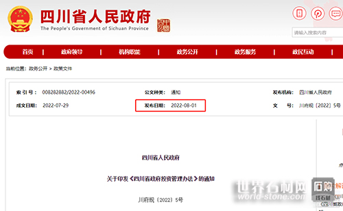 在8月1日,四川省政府正式出臺了《四川省政府投資管理辦法》,本辦法自2022年10月1日起施行。