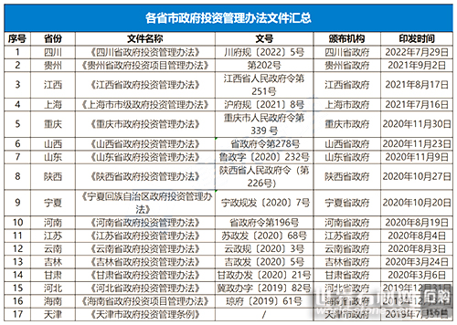 其他各省市對于投資管理的規定詳見其政府投資管理辦法。