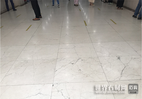 深圳市中醫(yī)院大廳地面。從圖片看出來石材表面裂紋密布,極其難看。