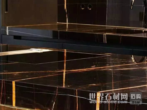 石材,常用于廚房臺面、洗手間臺面、地板等。它的黑色紋理和光滑表面為空間增添了現代感和奢華感。