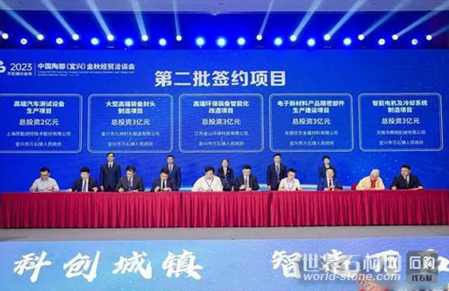 世界石材網獲悉,10月17日,2023中國陶都(宜興)金秋經貿洽談會萬石分會場活動在宜興融達國際大酒店舉行,12個項目簽約落戶萬石,總投資約56億元。市委常委、市紀委書記、市監(jiān)委主任張靜紅,副市長、市公安局局長周杰參加會議。