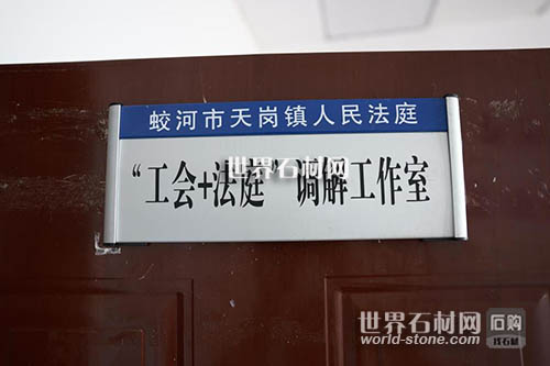 為更好維護天崗石材產業園區內企業勞動者的合法權益,進一步保障園區企業良性健康發展,蛟河法院以蛟河總工會成立天崗石材產業園區石材行業工會聯合會為契機,充分發揮人民法院在多元化糾紛解決機制改革中的引領、推動及保障作用和工會組織服務職工、參與勞動爭議協商調解職能作用,成立了“工會+法庭”調解室。一方面為石材企業提供法律服務,另一方面保障勞動者合法權益,當好企業“法律顧問”和群眾“貼心人”,著力將矛盾化解在訴前,為營造法治化營商環境增添可靠而便捷的司法助力。