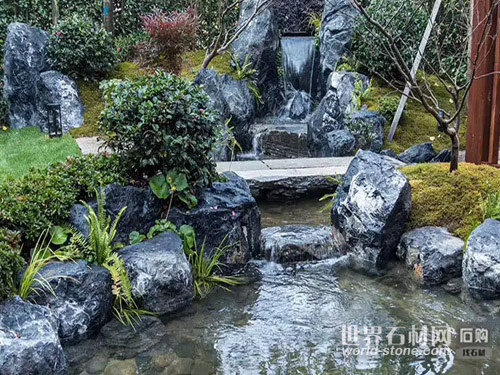 景觀石品種多樣,其中黑山石是一款很好搭配的
