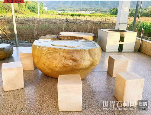 其實,黃蠟石不僅用于景觀裝飾,還可成為更加實用的物品,就是茶幾。一般用來制作茶幾石桌石椅的石頭就是黃蠟石、泰山石、黑山石。常見的石桌石椅還是是黃蠟石較多,因其有著富貴色暖色調黃色,相對泰山石、黑山石的高貴冷漠,黃蠟石溫暖許多,更令人喜愛。