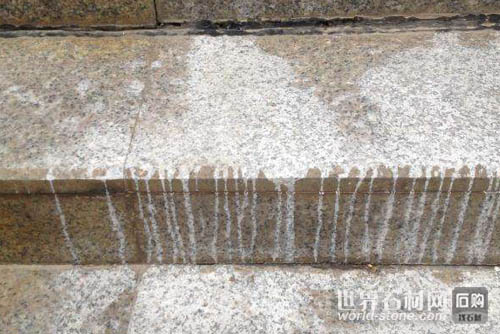 4.天然石材中石灰石類吸水后溶蝕,石材表面出現失光、變色、坑洞、老化等現象;