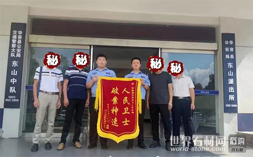 此案告破,該石材廠老板挽回了七千多元的損失,為表謝意,向華容公安局送上了“人民衛士 破案神速”的錦旗。
