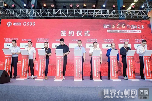 “石”光淬煉,永定紅再開新篇。據世界石材網獲悉,11月9日上午,由龍巖市永定區人民政府主辦的【相約永定紅·共創新未來|永定紅2023全球品牌發布暨招商推介會】在主展館論壇區順利召開。中國石材協會常務副會長 齊子剛、中共南安市委副書記 林添盛、水頭鎮黨委書記 陳長泰、全國工商聯石材業商會會長 劉良、福建省石材協會會長 蔡小郭、南安石材協會會長 王清安;以及來自龍巖地區的領導:龍巖市人民政府副秘書長 丘其中、龍巖投資發展集團有限公司董事長 溫能全、龍巖市永定區委副書記 蘭光、永定區委常委、副區長王文龍出席了本次活動。