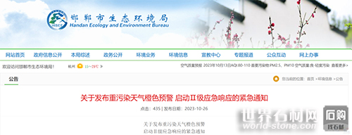 世界石材網(wǎng)了解到,重污染天氣期間,工業(yè)、物流等行業(yè)受限較大,從河北邯鄲我們可以感受到。