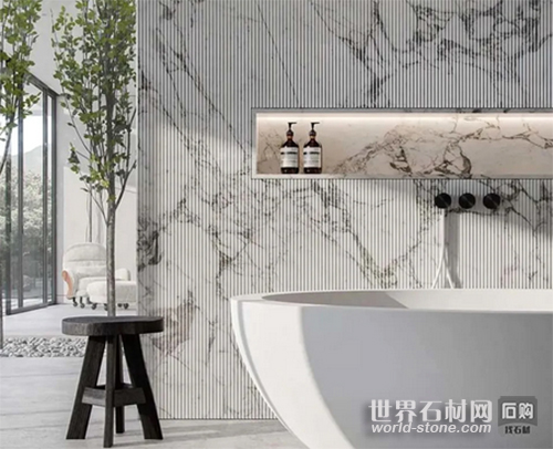 拉槽大理石又稱“拉溝”或“拉絲”,指在石材表面開一定的深度和寬度的溝槽,使大理石表面看起來更立體、有層次感。拉槽面大理石防滑耐磨,應用廣泛,除了作浴室防滑板,也可用于客廳、餐廳等位置。