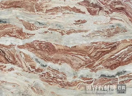 ,表面有紅、灰、白等色調,且層次分明,紋理漂亮獨特,如同連綿不絕的紅色山川,靈動而壯闊。